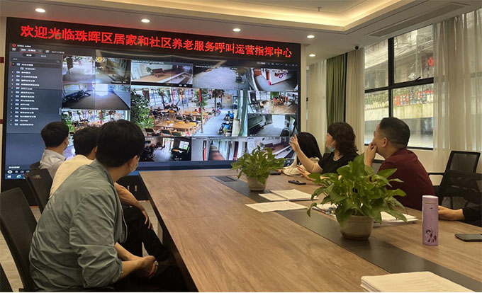 (考察珠暉區(qū)居家和社區(qū)養(yǎng)老服務(wù)呼叫運(yùn)營指揮中心)