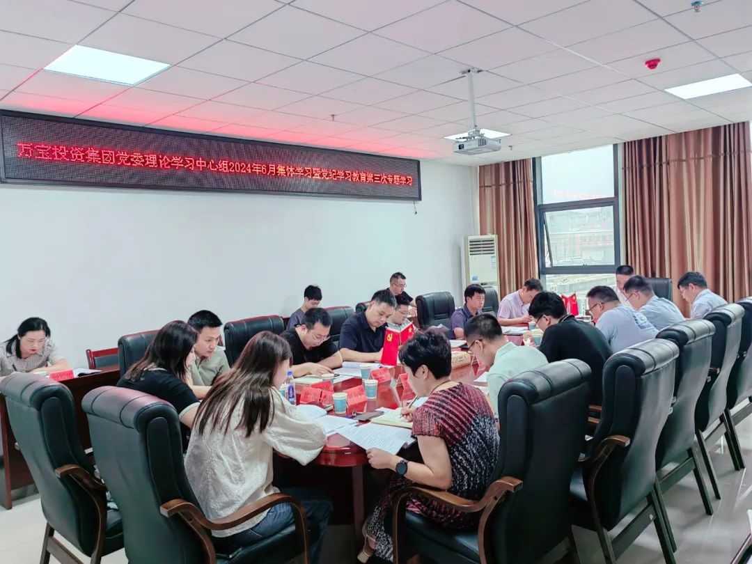 6月28日,萬(wàn)寶投資集團(tuán)黨委書記、董事長(zhǎng)陽(yáng)文林主持召開黨委理論學(xué)習(xí)中心組2024年6月集體學(xué)習(xí)暨黨紀(jì)學(xué)習(xí)教育第三次專題學(xué)習(xí),深入學(xué)習(xí)領(lǐng)會(huì)習(xí)近平總書記關(guān)于全面加強(qiáng)黨的紀(jì)律建設(shè)和優(yōu)化營(yíng)商環(huán)境、招商引資、民營(yíng)經(jīng)濟(jì)發(fā)展的重要論述,逐章逐條學(xué)習(xí)《中國(guó)共產(chǎn)黨紀(jì)律處分條例》,推動(dòng)黨紀(jì)學(xué)習(xí)教育走深走實(shí),持續(xù)在學(xué)思用貫通、知信行統(tǒng)一上下功夫。黨委副書記、總經(jīng)理徐業(yè)波,黨委委員、紀(jì)委書記葛旭華,黨委委員易志高,全體主管及以上人員參加。